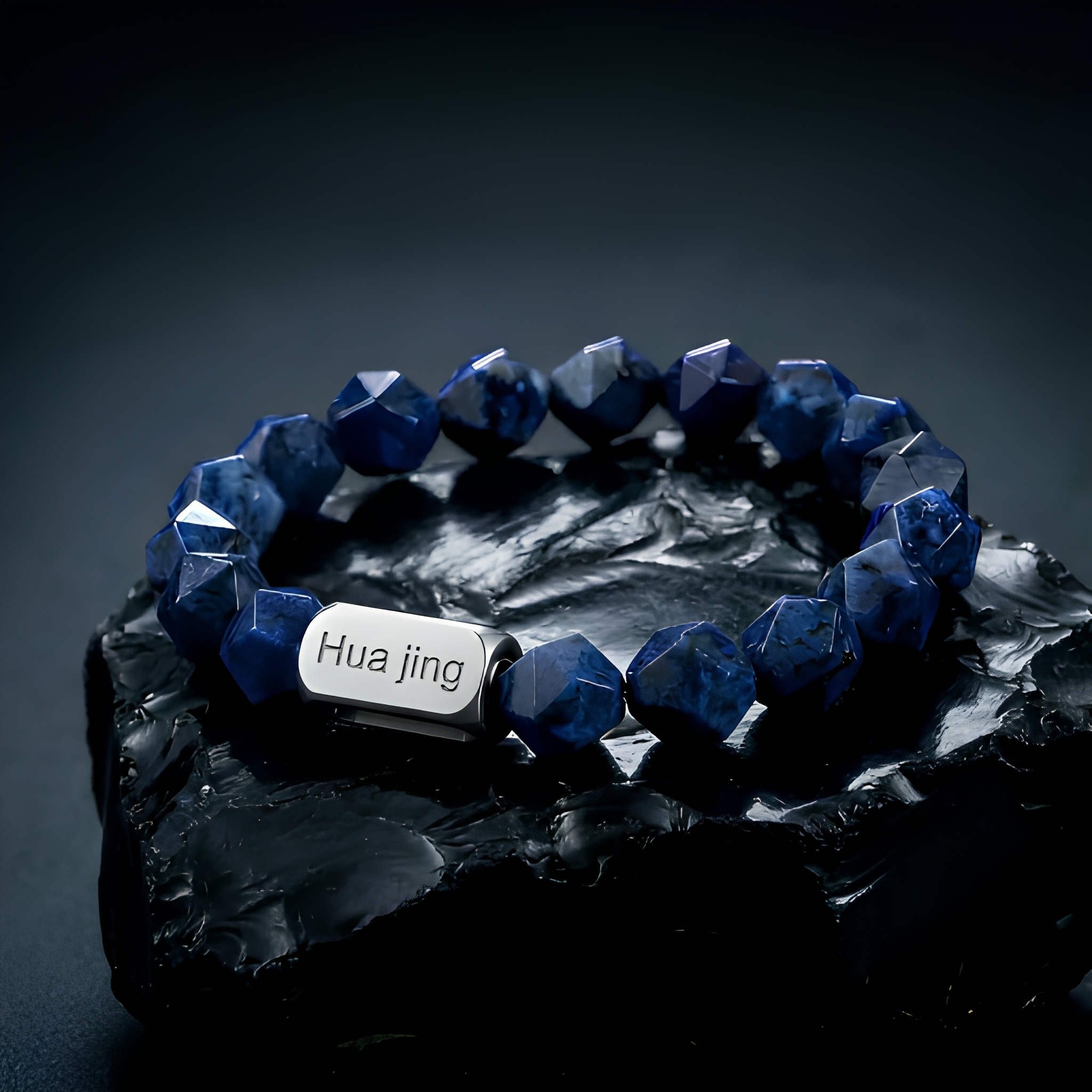 Hua jing™ Signature Men’s Faceted Blue Sodalite Stone Bracelet | Premium Hand-Finished Luxury Jewelry